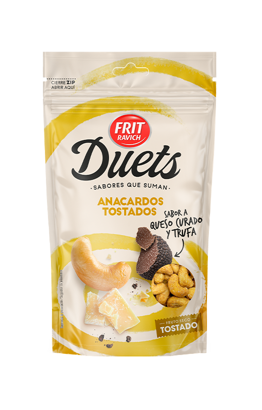 Prova una fusió de sabors irresistible. Exquisit formatge d’ovella curat combinat amb l’elegància de la tòfona. Un paladar refinat per als anacards torrats. Duets són sabors que sumen.